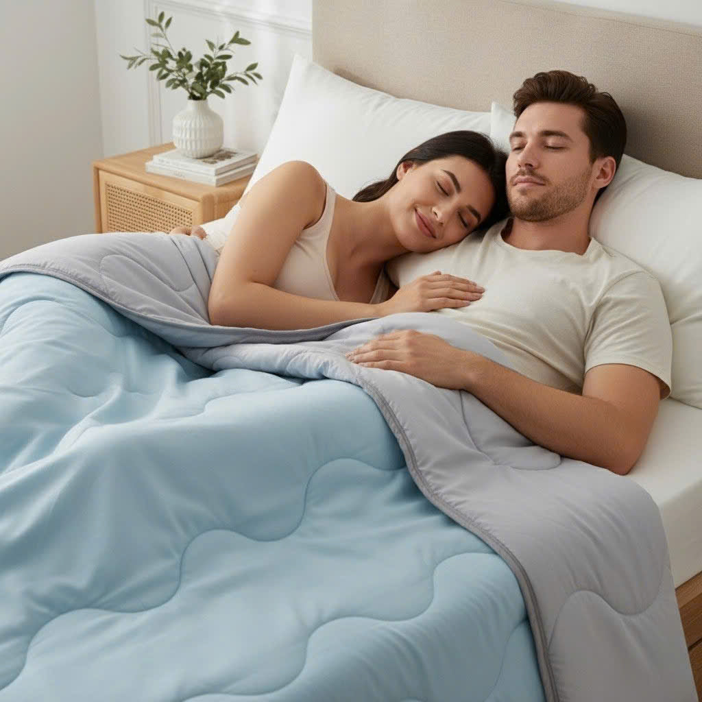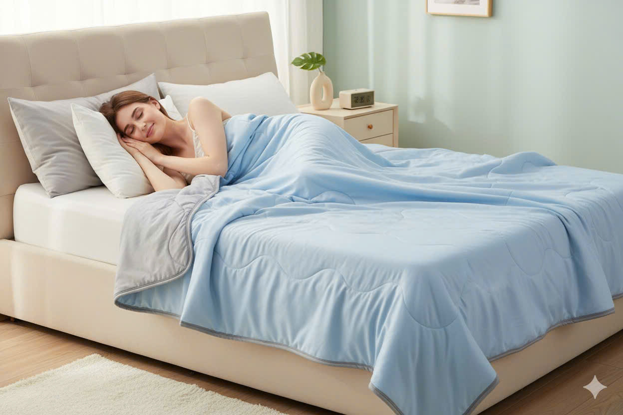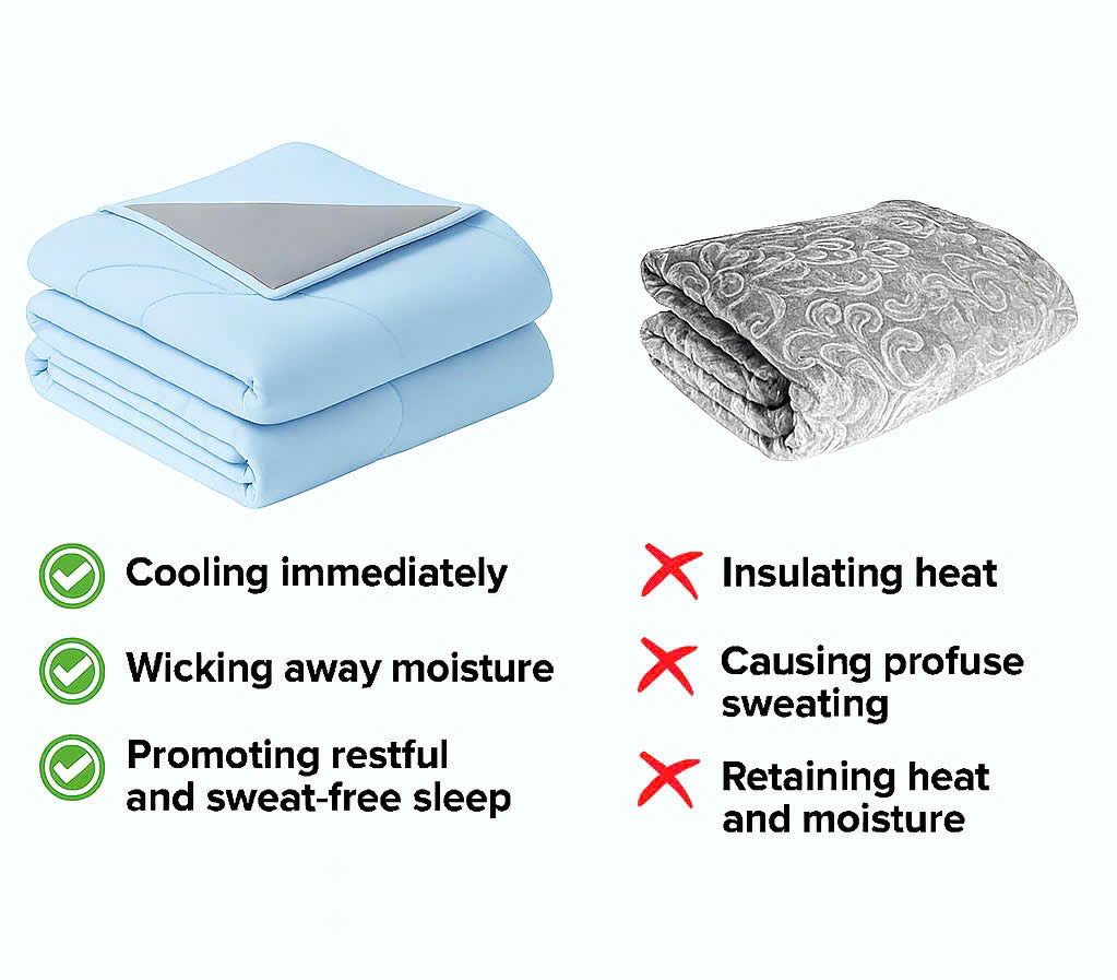 The Bluna Cooling Blanket is designed to give you the perfect balance of comfort and temperature.While ordinary blankets trap heat and cause discomfort, Bluna’s cooling technology keeps your body cool, dry, and relaxed through the night.